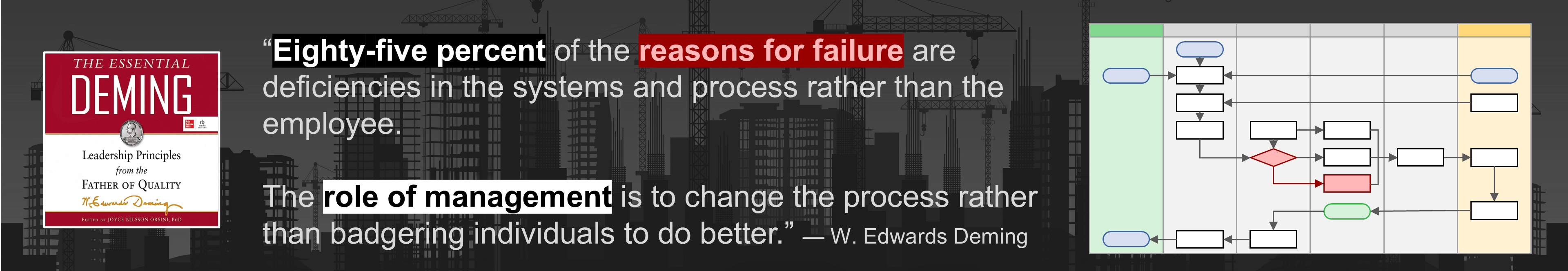 “Eighty-five percent of the reasons for failure are deficiencies in the systems and process rather than the employee.   The role of management is to change the process rather than badgering individuals to do better.” — W. Edwards Deming